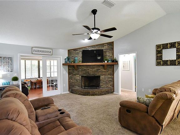 BEAT THE HEAT in this GREAT POOL home! This home is a 3-way split plan featuring 4 bedrooms/2 baths. Nearly new Salt Water Pool installed in 2015! This home has lots of upgrades to include new exterior vinyl siding, new double pane windows, newer slide-in range and stainless appliances. The dining area overlooks the living room that offers vaulted ceilings and an impressive brick fireplace. French doors from the living room lead out to a Florida room that overlooks the pool area. Expand your living area to the outside in the covered lanai and screened pool area. Pet & kid friendly fenced back yard with a detached 10x20 storage building. Desirable S/E location, NO homeowners assoc., cul-de-sac lot that's close to shopping, restaurants and more!
