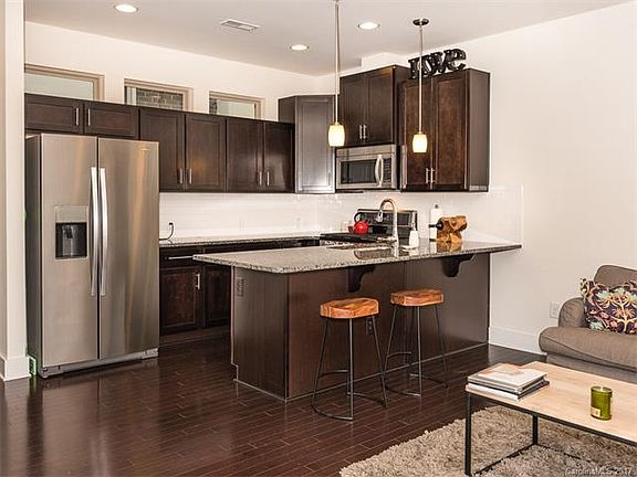 Beautiful 3 story, 2 bedroom townhome in NoDa! Walk to the new light rail, shops, restaurants, music venues, and coffee houses that The Arts District offers! Easy commute to Uptown. Upgraded appliances in kitchen with stainless steel, granite, and hardwoods along with large center island and breakfast bar. Master bedroom has 12" ceilings and a large walk in closet with tons of light. Both bedroom baths have granite counter tops and tons of cabinet space. Unit is in mint condition!