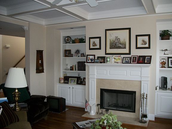 - Interior: 10 ft+ Ceil Main, 2-Story Foyer, Trey Ceilings, Wall/Wall Carpet, Bookcases, Fire Sprinklers