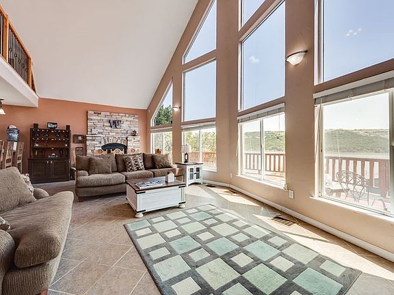 Wood burning fireplaceDock with boat liftOutdoor kitchen areaBeautiful rock workQuartz counter topsCathedral ceilingCustom cabinets