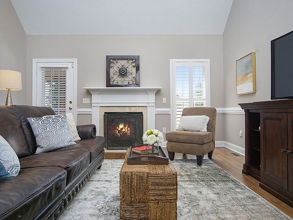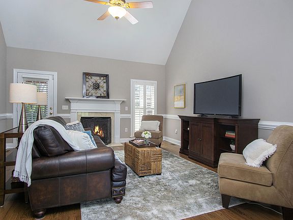 Full brick beauty located in sought-after Stallings Farm community. Home has been lovingly prepared for its new owner. Pre-listing inspection & minor repairs already completed. Interior freshly painted a modern, yet warm grey, hrdwd floors refinished, new carpet, & deck re-stained. Built with attention to detail - real site-finished wood floors, full brick exteriors, crown & chair rail moldings, & more. Very desirable split bdrm floor plan with open living areas & grand cathedral ceilings in the center heart of the home. Kitchen renovated with granite counters, over & under cabinet lighting, & stainless appliances including gas range. Private master suite features large walk-in closet, recessed lighting, dual vanity sinks. Upstairs bonus/bedroom has its own full bath - perfect space for teens, guests, home office, or media room - very flexible space. Rear covered deck is the perfect spot to enjoy warm southern summer days & then relax around the firepit on cool fall evenings.