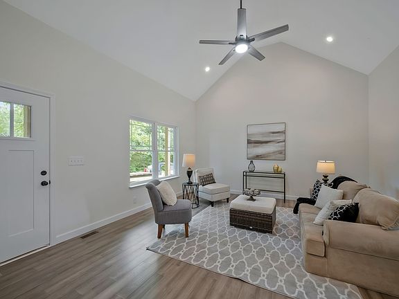 100% Complete and move in ready on 1.10 ACRES!!! **THE ONLY NEW CONSTRUCTION HOME ACTIVE IN ERIN as of list date** Sky high ceilings in the great room!! One level living. Granite countertops in kitchen. UPGRADED stainless steel Frigidaire appliance package included. Upgraded easy shut white cabinets. Hardwood throughout. Luxury Vinyl flooring in bathrooms. On trend upgraded granite countertops in the bathrooms. Upgraded plush carpet in bedrooms. Large closets in all bedrooms. Walk in closet in primary bedroom. 10x12 back deck. No HOA & NO RESTRICTIONS!! 1 Year Builders Warranty!! Beautifully STAMPED CONCRETE front porch and sidewalk. *Yard will be smoothed and seeded prior to closing **LOCAL experienced and generational builder known for excellent craftsmanship** **100% LOANS AVAIL.|| BUILDER IS VA APPROVED || Preferred lender is offering incentives ASK** **Minutes away from Hwy 46 and Hwy 13. **New survey is avail.*