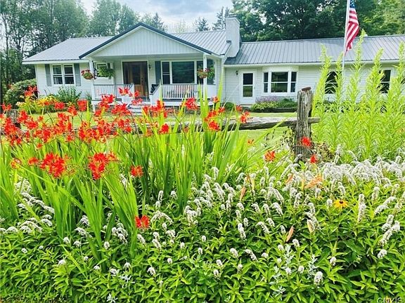 WOW! Expect to be impressed with this beautifully maintained, 3 bedroom ranch sitting on 45.16 gorgeous acres. Enter through the large family room with tall knotty pine, tongue and groove ceilings, exposed wood beams and pine hardwood floors that create a warm rustic retreat. The sliding doors go out onto a balcony deck that overlooks the picturesque back garden area and a private treelined setting that is perfect for entertaining or even just a peaceful morning with the nearby wildlife. A large kitchen with an island and all matching appliances, a formal dining room and a full sized bath. The large dry basement with tall ceilings and a full double door walkout, leaves room for additional living space if finished. There is also an attached 2 car garage with plenty of storage. This immaculate property boasts scenic views, flowers and lush greenery, ATV trails throughout the wooded portion of the property and includes water frontage on the John O'hara Brook for the areas coveted trout and salmon fishing.
