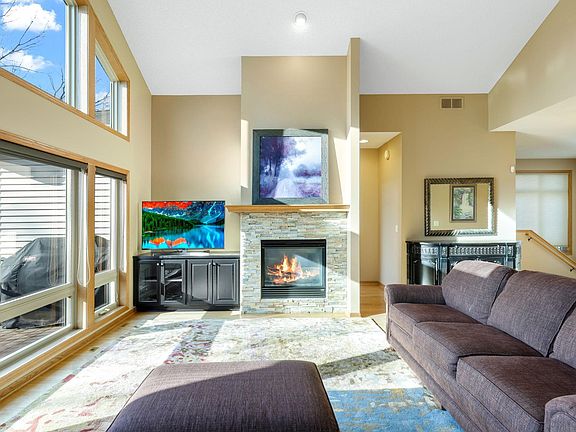 Welcome home to this executive single level townhome with wetland views and a fully finished walk-out lower level. The main floor is light and bright with dramatic windows and vaulted ceilings. Enjoy the open floor plan including a stone fireplace, hardwood floors, and granite center island w/ a breakfast bar. Flex room located off the living room could be an office or dining room. Tiled primary suite with walk-in shower, tub and dual sinks. The lower level includes a large family room with a gas stove and wet bar. The two bedrooms and 3/4 bath in the lower level are perfect accomodations for guests. Heated and insulated garage has tons of storage. Enjoy one-level living at it's finest with scenic views. Great location near beautiful parks, trails, restaurants and more.
