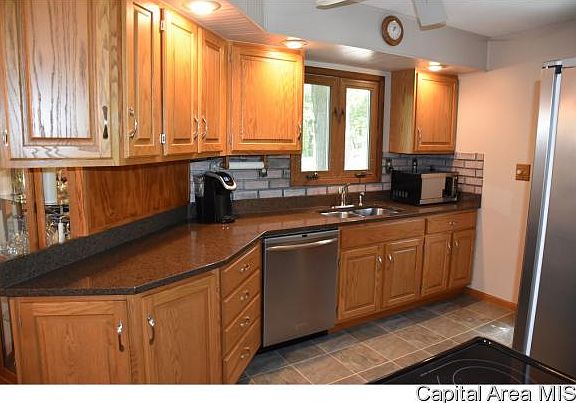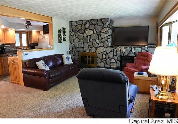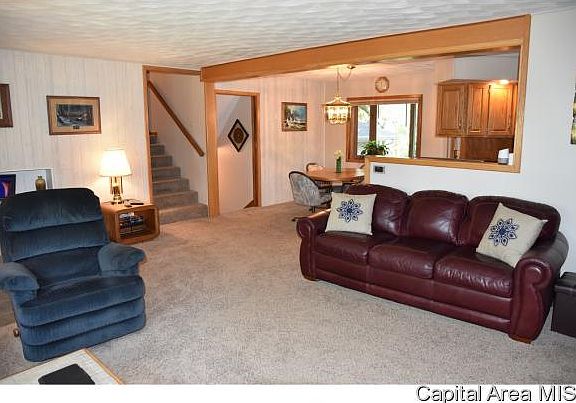 Nature lover's dream with edge of town acreage. Hilltop views from this 3 BR tri-level are of wooded low lands and Flat Branch creek. Fireplace and large bay windows in living room. Kitchen has quartz countertops and gorgeous cabinetry. Finished family room/office with wet bar and fridge. Many updates throughout. Gorgeous hardwood floors. 2 car att. garage w/finished floor opens to heated and cooled workshop. Plus, there is a 2 car det. garage. Won't last long!