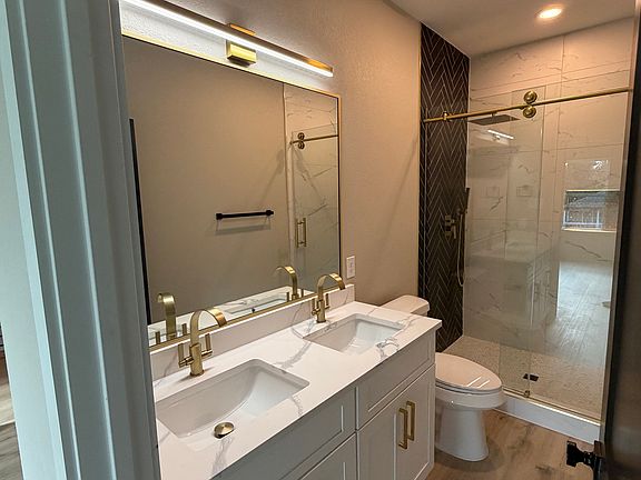Upstairs laundry + spacious primary suite with walk-in shower and double vanity