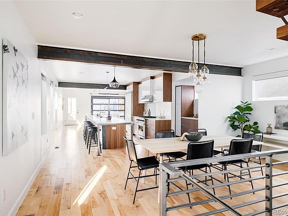 Experience architectural brilliance in this vibrant LoHi home! Industrial elements blend seamlessly with modern sophistication, creating a living experience that surpasses expectations. Throughout, enjoy mixed metals, exposed I-beams, a floating staircase, automatic shades, and a retractable garage-door wall, merging the living room with the backyard. A perfect sized family room, a main level office, and the bright, open-to-it-all kitchen boasts a magnificent-sized waterfall Calcutta quartz island, modern custom cabinetry, and a top-of-the-line Viking appliance package, with a tucked utility and prep station to keep the overall aesthetic tidy. Upstairs, the master suite is a sanctuary of luxury, featuring a lavish 5-piece bath and a spacious walk-in closet. Ensuite secondary bedroom, signature tile light wall, loft space with a built-in wet bar, and two rooftop decks offer additional allure with both mountain and city views. The finished basement hosts two more bedrooms, a full bath, and a second living space, adding versatility to however you might enjoy using this space. An exceptional opportunity within a vibrant community at your doorstep, trendy dining options, with an incredibly high walk score, entertainment venues, and more! This home offers a truly remarkable living experience - see it for yourself!