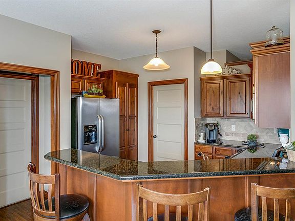 This immaculate home has great finishes throughout and is move in ready...don't miss out! Main floor boasts an open living room with a stone fireplace, easy flowing kitchen with wood floors, granite counter tops, stainless steel appliances, large walk-in pantry, eating bar & an adjoining dining space with a door to the covered deck. The master bedroom suite with a custom ceiling features a private bath with his/her sinks, shower & huge walk-in closet. Topping off the main floor are two additional bedrooms, full bath & laundry. A staircase leads you down to the unfinished basement that holds potential for a rec room, 2 bedrooms & full bath. The home sits on a great wood fenced lot with a covered deck, sprinkler system & irrigation well.