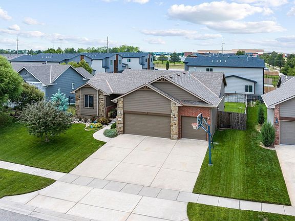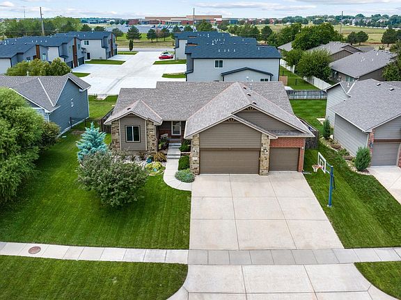 Located in the friendly neighborhood of Tyler’s Landing in lovely Northwest Wichita, this freshly painted 5 bedroom and 3 bath house is ready to be called your new home! Situated in the heart of Maize South schools, and only minutes from New Market Square, you’ll love being spoiled by all the new & modern conveniences surrounding you. At only 10 years old, this home combines the benefits of contemporary design with the added bonus of fully paid specials (starting in 2024 tax year). Enjoy morning sunrises from your front porch and unwind on the covered back deck as the sun sets in the western sky. Step inside to find a welcoming living room, complete with a gas fireplace and abundant natural light, perfect for cozy evenings or entertaining guests. The living room flows seamlessly into a spacious dining area, ideal for everything from casual family meals to festive holiday gatherings. The kitchen has everything you’ll need, featuring modern appliances, granite countertops, a raised eating bar, finely crafted cabinetry, and a smartly designed walk-in pantry that offers ample storage while staying out of sight. Just off the kitchen is the convenient laundry/mud room, providing a practical space for the family to kick off their shoes and drop their belongings as they enter from the garage. Speaking of the garage, this oversized, fully insulated, and climate-controlled 3-car garage is more than just a place to park your vehicles—it's perfect for hosting neighborhood parties or pursuing hobbies year-round. It even includes a NEMA 14-50R outlet for all your EV charging needs. The main level’s split bedroom floor plan offers privacy, with the primary suite on one side and two additional bedrooms with a shared bath on the other. Heading downstairs, you'll discover a massive family room, highlighted by a stylish stone accent wall and built-in electric fireplace. The adjacent wet bar, designed to match the upstairs kitchen, is ideal for hosting everything from game-day parties to cozy movie nights. The lower level also features two spacious bedrooms, each with large walk-in closets, and a full bathroom to accommodate family and guests. A newly installed media hub in the primary storage room provides wired ethernet access throughout the house, meeting all your gaming, streaming, and work-from-home needs. Finally, and once you’re back upstairs, don’t forget to step outside to a beautifully landscaped yard, complete with a multi-zoned, well-fed irrigation system. The spacious backyard, with privacy fencing, is perfectly suited for outdoor activities and even has room to add that dream pool you’ve always wanted. 3617 N High Point is move-in ready and waiting for you to make it your own. Schedule your private showing today! (All information deemed reliable, but not guaranteed.)