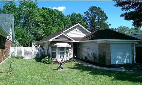 If low maintenance and low upkeep are your goal, this Pepper Ridge brick patio home with ATTACHED GARAGE could be your answer! Split bedrooms offer a lot of closet space, both with walk-in closets master closet measures 11' feet long! Kitchen has lots of cabinets, counter space, separate pantry, breakfast area which overlooks front garden (all appliances are negotiable). Living and dining room share soaring ceilings which offer dramatic and spacious effect. Double French doors in both living room and master bedroom open to covered 11' X 10' patio in back, which overlooks spacious, fenced backyard. Detached storage building in back offers additional seasonal storage. Attached garage is front loading which makes for easy entry and exit. Very attractive home offers convenience to schools, to shopping, to river and to Dauphin Island beaches, to Downtown and West Mobile, and to interstate and Hwy 90. Definitely not a miss! Add to your list to see!