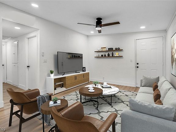 Welcome to 3617 Perliter Avenue, where modern elegance meets comfort in North Las Vegas, NV! This stunning property has undergone a complete transformation, showcasing a meticulously remodeled interior and exterior. Step inside to discover a freshly painted canvas with new flooring throughout, recessed LED lighting, and contemporary ceiling fans that enhance the ambiance. The kitchen is a chef's dream, featuring new countertops and S.S appliances. Indulge in luxury in the remodeled bathrooms, adorned with exquisite marble tile, new sinks, toilets, and Jet black finishes. The attention to detail extends to the exterior, with fresh paint & new windows enhancing both aesthetics and energy efficiency. Curb appeal is taken to the next level with two vibrant red doors, setting this home apart with a touch of modern flair. Conveniently located in North Las Vegas, this property is a gem waiting to be called home. Don't miss the opportunity to make this beautifully remodeled residence yours!
