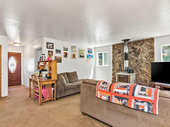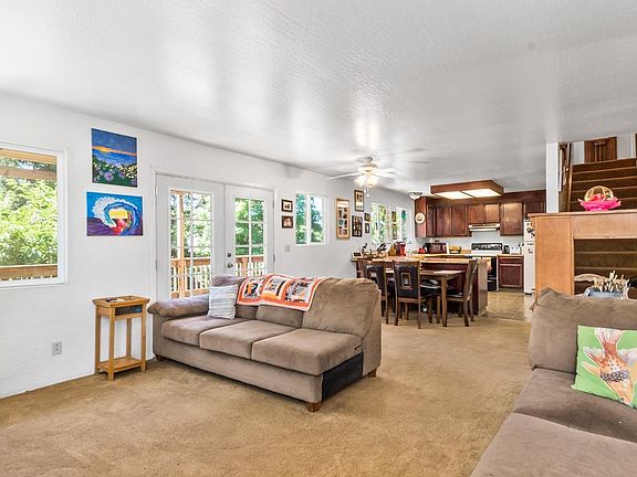 Homesteader's delight, come see this home on 5 acres. The views are captivating, the property is flat and ready for you to use. The farm style home has fresh paint and newer decks to enjoy the private retreat in the backyard. The deck is shaded with misters for lounging in comfort year 'round. Inside there are two bedrooms and full bath on the main level, along with the open floorplan. Big country kitchen and large family room has French doors opening to the deck. Large mudroom includes laundry hook ups and room for additional refrigerator and storage. Upstairs is a large sanctuary style bedroom, with French door opening to an upper deck. Two car detached garage and plenty of room for parking RV and other toys. Fenced in acreage is perfect for farm animals. Check out the stunning views on this lovely property.
