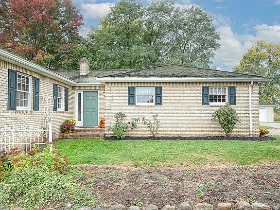 Nestled on 3.69 acres, this meticulously maintained brick Ranch is a true gem. Boasting 3 BR and 2.5 baths, this quality built home features 2x6 exterior walls and 12" block basement walls. Eat-in kitchen is equipped with appliances. Refinished 3/4" cherry floors adorn the kitchen and LR. The charm continues with cherry cabinets, flooring & trim throughout. Freshly painted interior. The basement offers two large, finished rec-rooms. Don't miss the remarkable 24x36 workshop with gas and electric and adorable 20x24 "She-Shed". Both have been resided for worry-free maintenance. Beautiful, stocked pond. Hot water boiler heat is 5 years old. Whole house generator. New roof on house and detached garage Nov 2023. This unique property truly offers a private sanctuary. Don't miss the opportunity to call it your own!