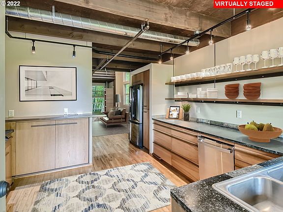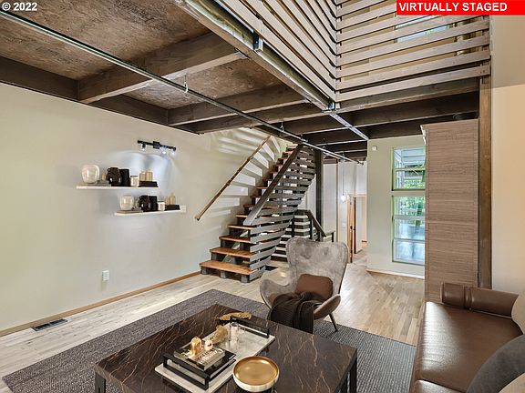 Contemporary loft-style townhouse w/ modern finishes. Hardwoods on the main floor, tall ceilings w/ exposed beams & mechanical. Chef's dream kitchen w/ soapstone counters, SS appliances, and abundant storage. Versatile floor plan. Balcony and a deck w/ seats. Attached garage and tuck-under parking. Very private feeling & 1 block from Powell on a dead-end street. Perfectly situated in SE. Clinton/Division and near public transportation. 1 bedroom is non-conforming. A virtual 3D tour is linked. [Home Energy Score = 6. HES Report at https://rpt.greenbuildingregistry.com/hes/OR10185060]
