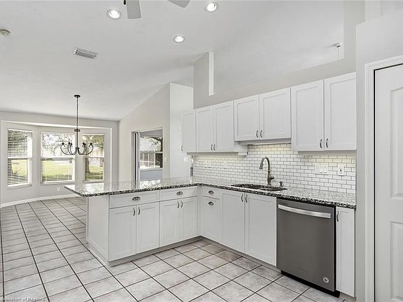 Wonderful Newly Renovated Four Bedroom Family Home! New wood laminate flooring, vaulted ceilings & plant shelves, open concept feel. Entertain your guests in the 14 x 18 living room & 11 x 16 dining room. The kitchen features white shaker style cabinets with updated hardware, granite counter tops, subway tiled back splash, built in desk + huge dining area. Guest bath has been completely remodeled. 15 x 9 Florida room offers the space you need to read, relax & watch TV, or step out and enjoy a big back yard with mature trees. Sun N Lake is a great community with lots of amenities - Two 18 hole golf courses, swimming pool, tennis courts & club house with full service restaurant & bar.