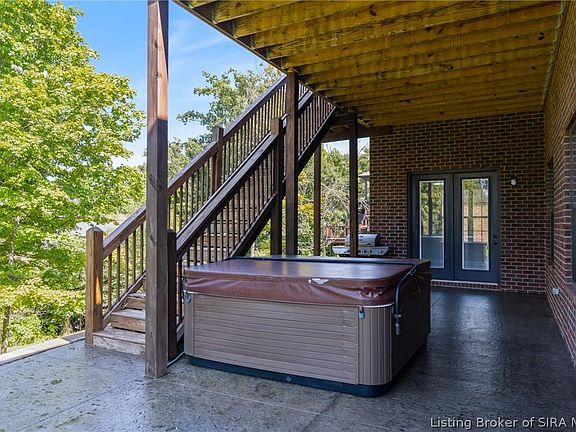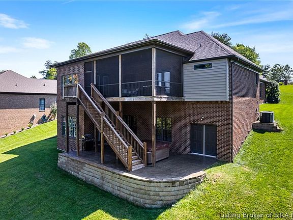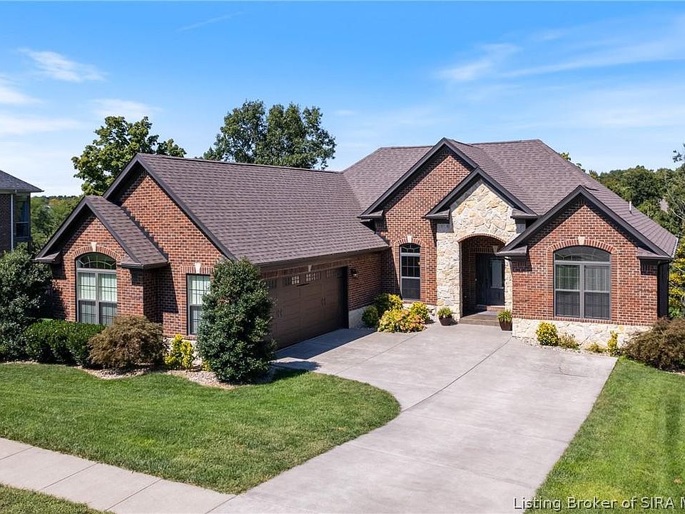 Welcome to this stunning home in Lakeside Forest in Floyds Knobs! This 4 bedroom, 3 full bath home boasts an airy, open floor plan with tall ceilings and large windows for loads of natural lights. The kitchen is any chef's dream with granite counters, tall upgraded cabinets and pantry, a massive breakfast bar and stainless appliances. The living room has fabulous wood floors, built-in bookshelves and an electric fireplace. Just off the dining area, there is a screened in porch that is perfect for enjoying your morning coffee overlooking the trees and pond behind the home. The primary bedroom is very spacious and the attached bath has dual vanities, large walk-in closet, a custom tile shower and jetted tub. The two guest bedrooms are on the other side of the home with another beautiful full bath. Downstairs, the basement is also bright and airy with 12 foot ceilings and walks out to the back yard. The finished portion has a 4th bedroom, a full bath, and large entertainment space. There is also plenty of storage and a utility garage for mowers or tools.