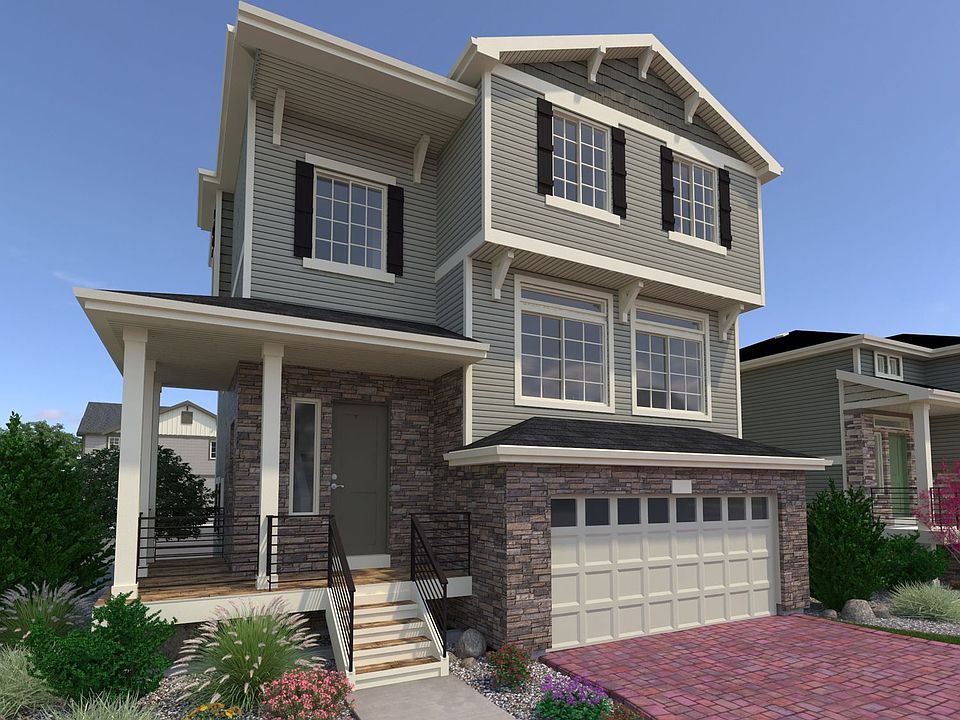 This low maintenance 3 story home features 2202 sq.. ft. of open living space complete with 3 bedrooms, 2.5 bathrooms and a first floor above ground walk out basement where a fourth bedroom & third full bathroom can be placed. This home has 9 foot ceilings throughout main level with trey ceilings in great room. Modern, contemporary architectural detail makes this home unique. Includes spa shower, double vanity, and California walk-in closet in master, large eat-in island, dining area, popular upstairs laundry room, large windows, balcony off kitchen and great room. The exterior provides a professional front-yard landscaping, 5 foot privacy fence, and trash & snow removal.