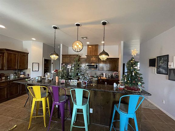 Beautiful, Updated 4 bed/3 bath home sitting on irrigated 2 acres with a well. This home features two living spaces and formal dining room, open kitchen with bar seating, beautiful dark stained cabinets, tile throughout for easy cleaning, fresh paint, a large three car garage w/ water softener & RO System, and livestock fencing with horse stalls. Plenty of room for all your animals and toys.