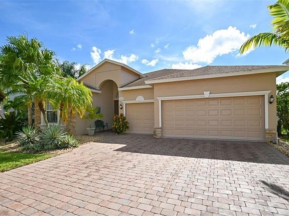 This STUNNIING RioMar home offers it all! SINGLE LEVEL LIVING, BEAUTIFUL LAKE VIEWS, PRIVATE HEATED SALT WATER POOL & SPA , PRIVATE DOG RUN, IMPRESSIVE LANDSCAPE LIGHTING BOTH FRONT AND BACK INCLUDING FLOOD LIGHTS . LOCATED IN A QUIET CUL-DE-SAC LINED WITH MAJESTIC ROYAL PALM TREES THAT LIGHT UP AT DUSK. THREE CAR ATTACHED GARAGE WITH PAVERS ON DRIVEWAY AND ENTRY. The moment you enter this home you will be met with the Breathtaking Lake View Vistas along with 12 ft. ceilings and Gorgeous Slate Flooring throughout. The kitchen has Granite countertops, a kitchen island with bar stool space, stainless steel appliances and open to a family size breakfast room(easily sits 8) where you can have your morning coffee while enjoying the Lake Views and Nature . A convenient and private fenced doggie run is accessible from the kitchen side door. The large Master Bedroom wing includes Full Lake Views, ensuite with two ENORMOUS walk-in closets, shower , sperate garden tub & double vanity sinks. This homes floor plan is versatile to fit all your families needs. Floor plan provides terrific separation and privacy for family members or visiting guests A Great home for entertaining ! Step outside through the sliding doors to your own PARADISE. The large screened lanai features both shaded and non shaded seating areas, accent lighting , swimming pool and spa ( spa spills into the pool creating a lovely water sound ) . Pool & Spa are heated, salt water and self cleaning. Long life, non-skid child friendly Prodeck Rubber is installed on the lanai deck. From the lanai you have a magnificent view of the Lake and you will be charmed by the lovely sunsets. RioMar is a popular neighborhood with a community pool , LOW FEES AND NO CDD FEES . TAKE THE VIRTUAL TOUR TO FULLY APPRECIATE THIS HOME . A PERFECT LOCATION CONVENIENT TO SHOPPING, THE BEACHES AND DOWNTOWN SARASOTA. A TREMENDOUS OPPORTUNITY . WILL NOT LAST