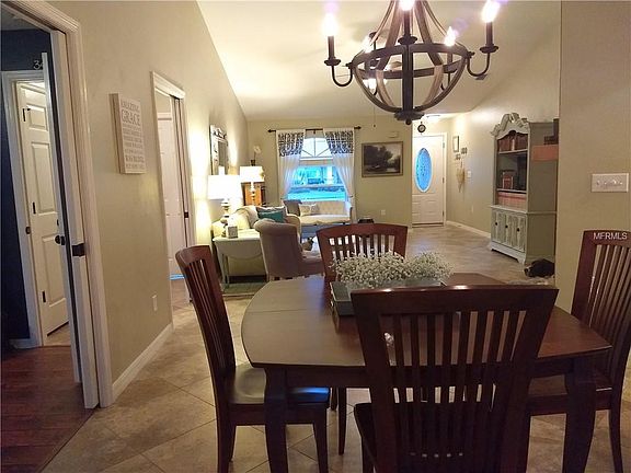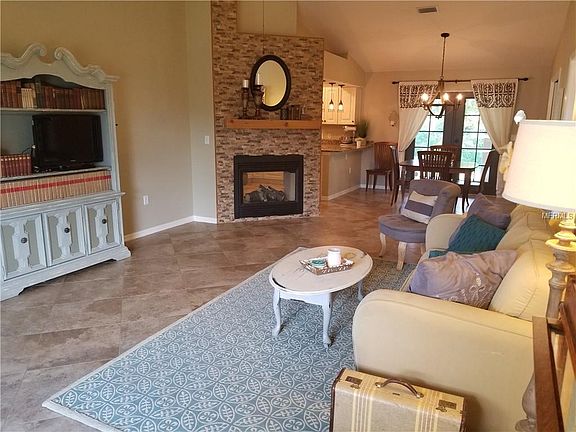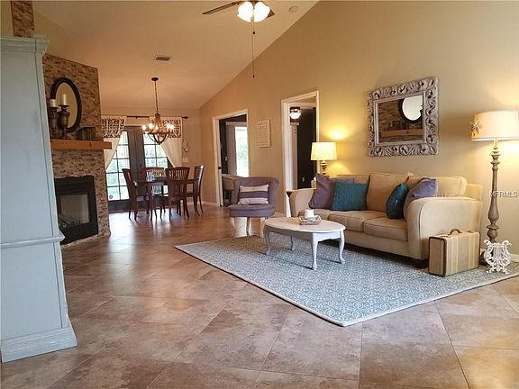 Three bedroom, two bath, home located on a private conservation greenbelt area, in a neighborhood with sidewalks and quiet streets. The beautiful open great room plan has vaulted ceilings and a two sided gas fireplace to warm you on those cool Florida evenings. This home is open for entertaining with a 15 x 22 great room, that flows into the dining and kitchen areas. The kitchen has upgraded wood cabinets and granite countertops, with nice views of the paving brick lanai, fenced back yard, no homes behind, and a wooded view. With new paint inside and out, new light fixtures, overhead fans, and door hardware, Astroguard hurricane fabric, and the hot water heater and roof replaced in 2017 you can have confidence to relax and enjoy life (25-year GAF roof warranty transfers to new owner). All of the floors are finished in either tile or warm tone plank laminate. Bring the family and pets to this large back yard ,complete with an additional open air patio for grilling or sun bathing. Welcome home!