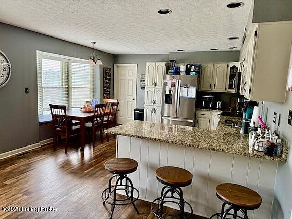 OPEN SUNDAY 2-4 PRICED TO SELL. 5 BR 3 Full Bth Walk Out Ranch In Oldham Co. 1st FL features a SPLIT FLOOR PLAN w/ a family living area dividing a PRIMARY SUITE and TWO Good size BRs and a Full Bth. LGE SPACIOUS KITCHEN w NEW GRANITE & Flooring, First Floor Laundry. FINISHED LOWER LEVEL with TWO BRs ( the 4th generous sized bedroom was divided but the wall could be removed if needed) Full Bth., FAMILY ROOM & ENTERTAINMENT area. Storage & TOOL Room. Lower Level walks out to SCREENED PORCH. ABOVE GROUND POOL/New Liner 2024 . 1.13 Acres New flooring added in Primary BR & BR Upstairs. New fencing. New DECK w 12x12 Gazebo. Home water filter system. New front storm door. Roof 2020. New vanity in Primary bath. All Whirlpool Appliances 3 yrs old. Lot extends farther than fence line