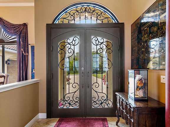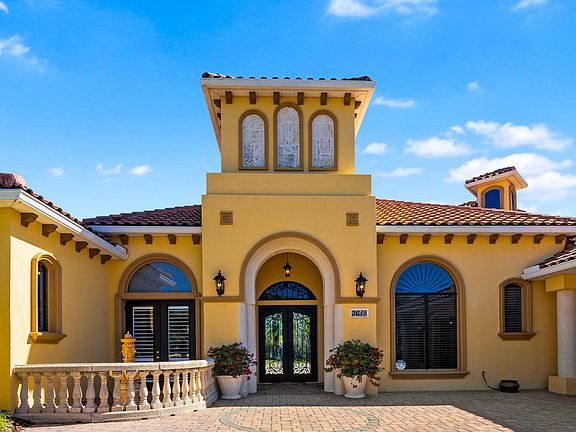 One-of-a-kind Mediterranean-style luxury waterfront residence with riverside pool and jacuzzi. Gourmet kitchen has a stainless Wolf range, Sub Zero refrigerator, GE Cafe Series Avantium built-in wall Oven/Convection/Microwave & wine refrigerator. The grand master wing offers sweeping river views, private access to the pool area, a spa-like luxury ensuite bath, massive walk-in closet and private corridor. The living area has gas fireplace and home is wired for audio. An upper level guest suite with living room, wet bar, bath and private river view deck makes an exceptional in-law. Gated paver drive leading to a 3-car attached garage, a screen enclosed riverfront heated pool, summer kitchen and gas fireplace complete this Intracoastal Waterway luxury home. Home warranty!