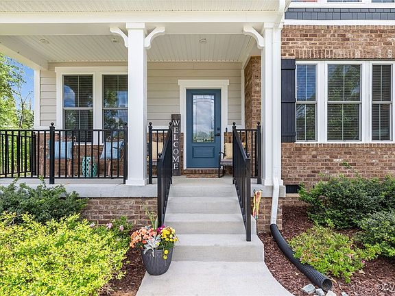 Welcome to this exceptional 4-bedroom, 3.5-bath home in the highly desirable Tarrington subdivision, nestled on a quiet cul-de-sac and adjacent to a serene empty lot. Built in 2018, this home offers over 3,200 sq ft of thoughtfully designed living space with great curb appeal and an inviting front porch. Versatile floorplan that offers a dining room that could be used as a playroom or flex room, a private office with double doors and a nice sized family room that features a stacked stone gas fireplace and coffered ceiling The gourmet kitchen is a chef’s dream with gas cooking, double ovens, abundant cabinetry, undermount lighting, and a spacious island perfect for entertaining. A mudroom with a drop zone, tankless water heater, and large closets throughout add convenience and storage. Upstairs there is a large primary bedroom, three other nice sized bedrooms and a bonus room with a closet that could be used as an additional 5th bedroom. Step outside to enjoy a composite deck overlooking a wrought iron fenced backyard with a full irrigation system in both the front and rear yards. Additional highlights include a spacious two-car garage with a whole extra bay for extra storage or work out space, wiring for an electric vehicle, and close proximity to the scenic James River with kayak landing. With its modern features, prime location, and impeccable design, this home offers the perfect blend of comfort, style, and functionality.