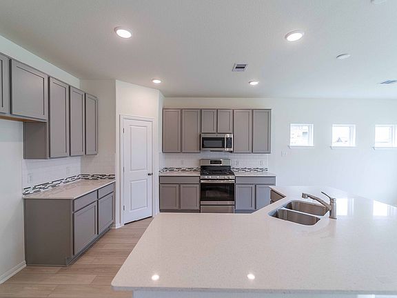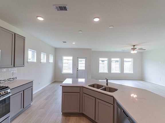 With convenience at the forefront, our Aquila floor plan will meet the lifestyle needs of most any family.. Boasting two spacious bedrooms and two full bathrooms, this single-story home is the perfect size for growing families or empty-nesters alike. As soon as you open the door, you are greeted by an elegant entryway that leads to the secondary bedroom with the secondary bathroom just beside it. Keep going, and you will find a secluded study past the two-car garage door entry. If you find yourself needing more storage space in the garage, opt for the larger garage and turn it into a 2.5-car garage. Wanting an extra bedroom? Transform the secluded study into a third bedroom, a craft room, a pet room, or whatever else your heart desires. Across from the private study resides the remote Master Bedroom. The attached Master Bathroom consists of dual vanities/sinks and a huge walk-in closet. Looking to add an extra spark to the master bathroom? Choose to revamp your bathroom with a master luxury bath with a bathtub and separate shower, or a master super shower instead of a bathtub! The opportunities are endless. Down the hallway, tying the space together, is the large family room with nine-foot ceilings, and the welcoming dining area combined with the kitchen. The gorgeous kitchen includes sleek granite countertops, flat-panel countertops, and a wide kitchen island that is perfect for added counter space. You'll love entertaining your guests with the open-concept feel of the kitch