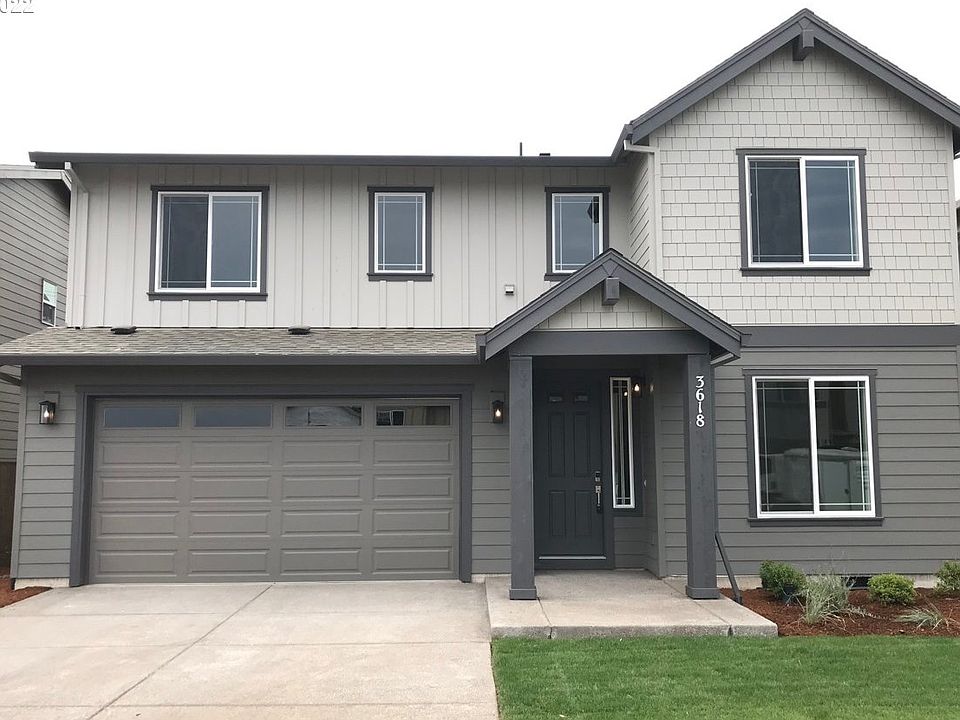 Mission style slate grey cabinetry with multiple upgrades. Quartz slab countertops with full tile backsplash in kitchen and baths. Stainless steel Whirlpool kitchen appliances including 5 burner gas cooktop, wall oven, microwave, dishwasher and chimney hood vent. Primary suite includes 5'x4' all tile shower, 6' garden tub, dual sink vanity and walk-in closet. Craftsman style open picket stair railing, gas fireplace in great room with contemporary style mantle, Tolman lighting package in Nickel finish. Fully landscaped front & rear yard with sprinkler system on a timer. Central A/C, tankless hot water heater. Covered patio with gas-line for future BBQ hookup. Earth Advantage Certified!
