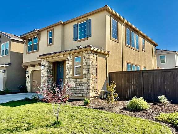 Welcome to this stunning 4-bedroom, 3.5-bathroom home offering 2,362 sq. ft. of modern living in the highly desirable Northlake community. Step inside to an open-concept floor plan featuring a spacious two-story great room and a contemporary chef's kitchen complete with white cabinetry, stainless steel appliances, a built-in oven and microwave, a 5-burner gas cooktop, an oversized island, and pantry storage. The layout includes a downstairs bedroom with a private en suite bath, perfect for guests or multigenerational living. Upstairs, enjoy a versatile loft, a convenient laundry room with washer and dryer, and a luxurious primary suite with dual sinks, a walk-in closet, and a spa-like bath with a soaking tub and separate shower. Relax or entertain in the covered backyard patio, and take advantage of the community's clubhouse, pool, and nearby park just one block away. Conveniently located near top-rated schools, shopping, Costco, and Sacramento International Airport.