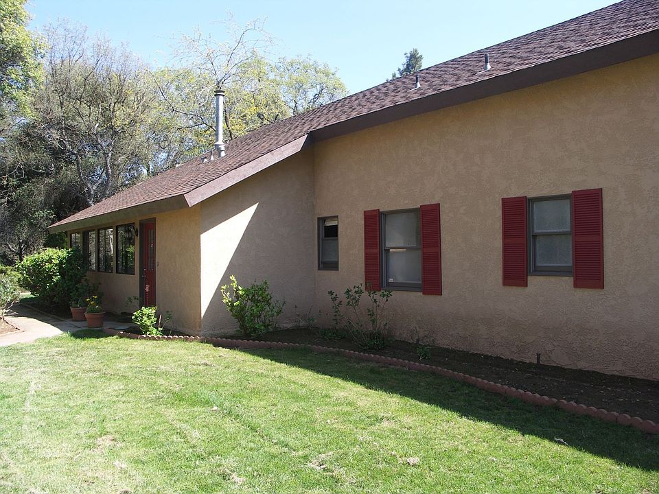 This is a beautiful property...and one with some truly unique custom features. The short version is a gorgeous 3,160sqft passive solar custom home with 3br3ba and 3 fireplaces plus an 848sqft garage with loft room on an excellent 5 acre parcel that has been set up for horses. But, if that whets your appetite, then you want to read the long version because there is a whole lot more to tell you about this delightful property. This one is special...read more below.<br/>Let's start with the property...this is a nicely secluded 5 acre parcel at the 2,500 foot elevation with gentle terrain and a great coverage of mature oaks, buckeyes, and conifers. The front portion of the property has been setup for horses with cross-fenced pasture areas, shades, water, and even an area for a large round pen (the round pen fencing has been removed but the gross area is still fenced). Water has been piped extensively through the property and there are dedicated areas for fruit trees and vines plus a separate fenced garden area. The home was placed near the center of the property and has been extensively landscaped with chainlink fenced lawns, flower gardens, walking paths, and a neat creek style water feature that flows down to the back patio. Finally, a garden path leads from the home up to the highest point on the property to a great above ground pool and full deck structure set amidst some unique rock formations providing a neat party area for outdoor parties and BBQ's in the summer. Also, with it's western view, you have a great place to relax and enjoy our spectacular sunsets. On to the home...<br/>And what a home it is...with its totally private setting, the 3,160 square foot structure has a unique passive solar design that lets in the winter sun and deflects the hot summer rays by use of high set ceilings with south facing custom windows. The home also has a brand new HVAC system plus 2 wood burning fireplaces (one in the master bedroom and one in the family room/libra