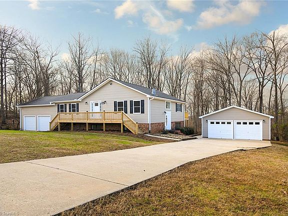 Here it is! Don't miss this spacious move-in ready home on +/-1.56 acres, with finished basement, 2 car attached garage, 2 car detached garage/workshop, and a HUGE two level deck! Kitchen has stainless steel appliances, granite countertops, plus an island, pantry, and pass-through to Dining area. Great room features a vaulted ceiling and fireplace w/gas logs. Roomy main level primary bedroom has private bath w/stand alone tub and separate shower. Downstairs enjoy 2 more bedrooms, an office and a bonus room you could use as a den, playroom or whatever you choose! Updates completed within the last year include vinyl siding, windows on main level of home and both garages, some doors, gutters, and primary bath. Enjoy convenience to I-85 and lower Davidson County taxes! Don't wait to schedule your private showing today!
