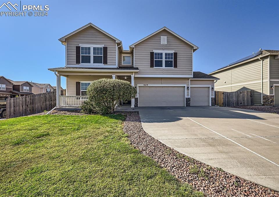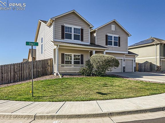 Welcome home! This stunning property features 3 bedrooms, 2 1/2 baths, and an oversized 3-car garage. Enjoy your private entrance with mature landscaping, a large and functional foyer, with an open floorplan connecting your family and dining rooms to the kitchen. The main floor conveniently offers a half bath perfect for guests, a nicely sized office, plus a walk-out providing access to the backyard and patio. The kitchen features all matching stainless-steel appliances, a gas stove-top, walk-in pantry, and tons of cabinetry and counterspace, perfect for storage, food prep, and entertaining. The second floor offers 3 nicely bedrooms, a massive loft(19x19) with a pool table (staying with the home), and a well-planned laundry room located right off the master. The master bedroom is extravagant in size with a matching L-shaped walk-in closet, all complimented with a full 5-piece master bathroom. This beautiful home features A/C for those hot summer months, along with humidifier, and Water Doctor Water Purification/Reverse Osmosis system! Need a break on the utility bill? The sellers added solar panels that all but eliminate your electricity dues each month, thus creating tangible savings each year. The home sits nicely on a premium corner lot across from a half cul-de-sac, featuring a fully fenced backyard, adding privacy and a safe place for pets. The property is only minutes from Fort Carson and Peterson Air Force, while providing easy access to ample shopping, dining, and entertainment offered through Mesa Ridge Parkway business districts.