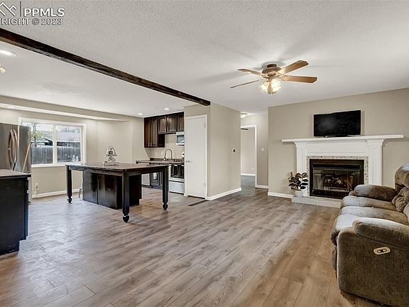 Step into this beautifully updated rancher with new interior paint and luxury vinyl flooring throughout the main level, as well as new carpet in the basement. As you enter, you'll be greeted by an inviting open floor plan, seamlessly connecting the living room and kitchen. The living room boasts large windows that fill the space with natural light, and a chic gas fireplace. The kitchen features stainless steel appliances, ample cabinet space, a large kitchen island, and an additional kitchen cart for all your storage needs. Continue down the hallway on the main floor, where you'll find the master bedroom, a secondary bedroom, and a full bathroom that has been completely updated. As you make your way downstairs, you'll discover a cozy family room with a wood-burning fireplace. Two more bedrooms, accompanied by a 3/4 bathroom, are situated conveniently on this level. There is also an additional room that can be utilized as an office, non-conforming bedroom, or storage area, with the laundry area conveniently connected. Step outside to the spacious fenced-in backyard, featuring a patio space for outdoor dining and entertaining, and boasting a shed for additional storage. This enviable location is close to all Academy Blvd and University Village shopping and dining amenities. Close to UCCS, with easy access to I-25. Don't wait- this one won't last long!