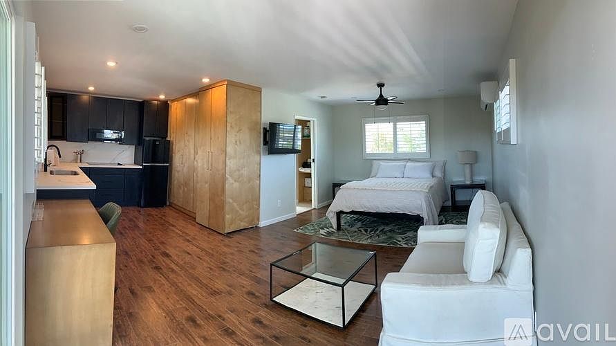 Large luxury furnished studio in San Diego. Amenities included: Updated kitchen & bathroom, balcony, storage, and in unit laundry. No smoking. No pets.