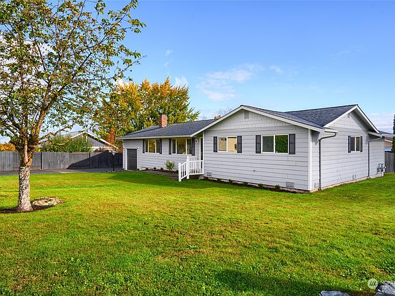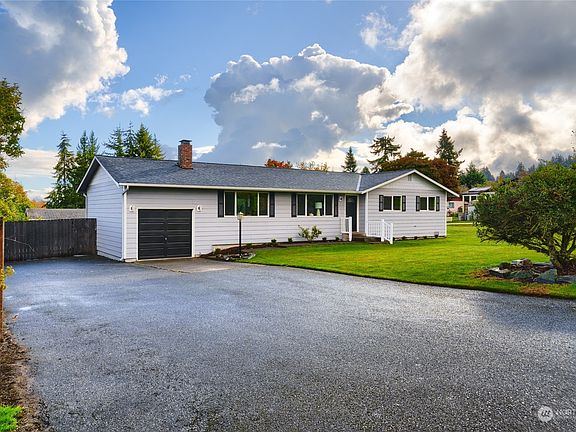 Nicely Updated Rambler w/partial view of sound/mountains! Ideally located in quiet residential neighborhood on east facing corner lot. Light filled great room with new GE appliance package in kitchen. Gas Heat. Wood burning FP in family room.New planking throughout. Spacious primary BR with 3/4 bath. 2 additional BR w/ den/office. Oversized deck in private rear yard. Room to park your RV/boat. All this is walking distance to shops, restaurants, and waterfront