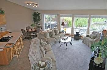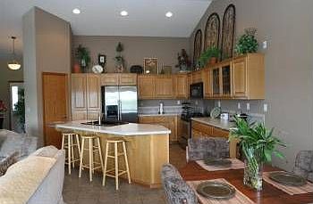 Lakefront cul-de-cac home! Beautiful entry brings you into this lovely home w/formal LR, greatroom & kitchen w/island &pantry. Family room w/floor to ceiling windows overlook the lake. Master suite w/high ceilings, soak tub & slider to private deck. Bonus w/checkerboard floor & wetbar. 2-car oversize garage w/RV pkg & huge deck & back yard. Central A/C. Truly a beauty!