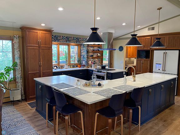 1-day ROFR. Magnificent home with extensive remodeling & upgrades in recent years. You’ll instantly fall in love with this home! Wide-open vaulted kitchen, dining area, living rm. Kitchen fully-remodeled 2020 with extensive quartz counters & Wendt Custom Cabinets, including pantry cabinet, spice cabinet & cabinet with heavy-duty appliance lift. Natural gas range has double ovens & exterior-vented island range hood. Built-in under-counter microwave oven. New bump-out with garden window. Natural wood laminate flooring new 2020 in kitchen, dining, living room. 2020 new Pella windows in kitchen, dining area, living rm, lower-level family rm, and the 3 lower-level guest bdrms. 2020 new doors to deck. 2012 new half-bath with ceramic tile accent wall, and new office/pantry/wet bar area next to kitchen fully remodeled with quartz counters, many cabinets & natural wood laminate flooring. 2012 exquisite new larger master bath full remodel/addition including quartz counters & quartz make-up desk counter, heated ceramic tile floor, glass shower enclosure, jetted tub, new Pella windows & transom windows. Upper level family room/den updated 2020 with new natural gas fireplace with granite hearth & surround, new pantry cabinet with pull-out shelves. Opaque transom windows provide natural light from master bath. Master bedroom remodeled 2012 with new vaulted ceiling, natural wood laminate flooring, big walk-in closet & 2nd closet, bump-out added with wood window seat & new Pella windows. 2020 new garage entry door to foyer. New decorative front door with glass inserts & sidelight about 6 to 7 years ago, and new insulated steel, overhead garage door about a year earlier. Central air conditioning lets you enjoy hot summers in cool comfort. Radon mitigation system. Yard graced by many large shade trees, extensive landscaping & plantings. 16’ x 12.5’ deck with pergola. Backyard has raised garden beds, fire pit nestled within highly-landscaped area & a dollhouse-style yard shed.