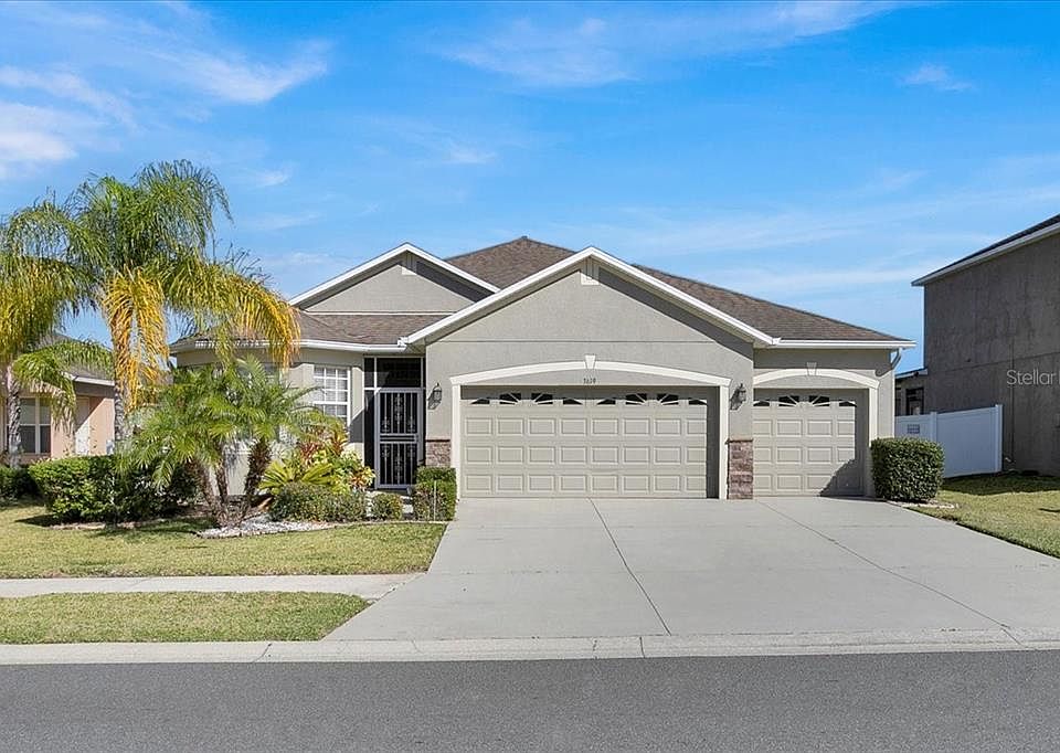 Welcome to an absolutely gorgeous property, pristine condition, finished to an exceptionally high standard and impeccably maintained. Step inside, and fall in love with your future home. High ceilings, accent walls, crown molding, new porcelain flooring, chair rails, ceiling fans in every room, linen cupboards in every bathroom, 3 car garage, water softener, all add to the appeal of this move in ready residence. Enter through front door porch into the bright hallway. To your left, through the archway, is a bedroom and bathroom suite, perfect for guests. Moving onwards, and also to the left, a beautiful formal dining room embellished with decorative chair guard rails awaits and is conveniently located opposite the kitchen. You will adore the kitchen which is exceptionally spacious and comes complete with granite counters, high quality stainless appliances (the fridge/freezer is brand new), plenty of 42 " maple cabinets, tile backsplash, built in office desk, central island and a large breakfast nook. The large laundry room is just off the kitchen and, in addition to washer and dryer, has the convenience of maple cabinets and sink. From the kitchen you can look out to the great family room and the spacious, screened lanai beyond. Sink into the sumptuous carpet in the impressive master suite which comprises of bedroom, two large closets, bathroom with dual sinks, large shower, separate tub and toilet room. The split floorplan has two other lovely bedrooms, both beautifully decorated, which share the 3rd bathroom. Outside at the rear you can relax, garden or play in the fully fenced yard which very private. Hampton Hills is a well-kept, friendly neighborhood conveniently located close to a great choice of shops and restaurants at the Lakeland Square Mall, and in very easy reach of the I4 which provides direct access to the Disney area, Orlando and the Gulf Coast. Room Feature: Linen Closet In Bath (Primary Bedroom).