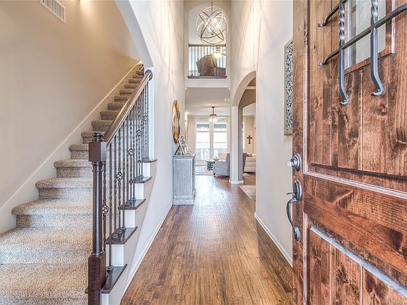 Pristine, custom home w/upgrades thru out. Tons of natural light, distressed hardwoods. Elegant entryway w/soaring ceilings through out main level. Big island kitchen w/pull out sliders in the lower cabinets. Master bed/bath is like a private retreat, all bedrooms downstairs. Game room/office w/full bath on 2nd floor. Large covered back patio for entertaining. Front and back outdoor sprinklers. Fantastic neighborhood pool. Don't miss this amazing house!