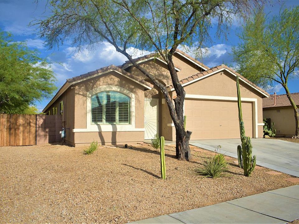 Very well-maintained home in the quiet Tucson Mountain Sanctuary neighborhood! Tile throughout, carpet in the bedrooms. Four bedrooms, two full baths. Home features granite countertops in kitchen, bathroom/laundry room. Stainless steel appliances, installed upgraded light fixtures, remote/ceiling fans, custom window coverings and security camera system. Family/great room and formal living room, large master suite with walk-in closet, soaking tub & shower. Open feel with vaulted ceilings and arched doorways. Large private backyard features a spacious covered patio, mountain views and mature irrigated landscaping for minimal maintenance. Come check it out!