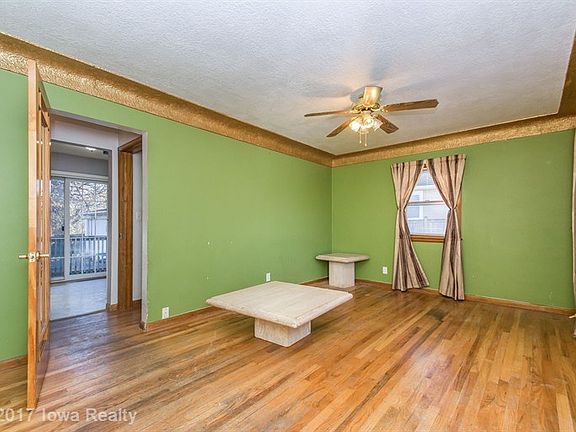 Nice family home. Two bedrooms are on the main level along with a large family room, full bath and kitchen includes appliances. Lots of potential, hardwood floors are almost throughout and there is wainscoting in the dining and kitchen area. The upstairs has a large bedroom and another bathroom, big closets. the lower level was previously finished and ready for you to finish again. Also in the lower level are a half bath and the laundry area. The kitchen slider walks out to a back yard, privacy fenced w/large brick patio. Maintenance free vinyl siding and newer roof!! there is a large two car detached garage with a third garage attached on the back for storage. Great family area on Southwest side of Des Moines near parks, schools and easy access to downtown.