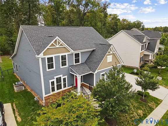 Located in the prestigious Tarrington community, this stunning home combines modern design with timeless comfort in one of Chesterfield’s most sought-after neighborhoods. From its welcoming curb appeal—featuring a mix of brick, HardiePlank siding, and shake accents with a bold red front door—to its thoughtfully designed interior, this property offers the perfect blend of style and function. Inside, you’re greeted by bright, open living spaces. A front flex room makes an ideal home office, sitting room, or formal dining area. The heart of the home is the open-concept family room, where a floor-to-ceiling stone fireplace creates a warm focal point. This space flows seamlessly into the chef’s kitchen, complete with white cabinetry, granite countertops, subway tile backsplash, stainless steel appliances, and an oversized island with seating. The adjoining dining area overlooks the backyard and provides the perfect setting for both casual meals and entertaining. The first-floor primary suite offers a true retreat, featuring a tray ceiling, abundant natural light, and a spa-inspired en suite with dual vanities, a tiled walk-in shower with bench, and a spacious walk-in closet. Upstairs, you’ll find a versatile loft/bonus area, a second bedroom with its own en suite bath, plus two additional bedrooms that share a well-appointed hall bath. The second floor also includes unfinished space—ideal for storage or easily finished to create an additional bedroom or flex space to suit your needs. Step outside to enjoy a private fenced backyard with a deck and plenty of green space—perfect for gatherings, play, or simply unwinding. Living in Tarrington means access to resort-style amenities, including a clubhouse, pool, fitness center, walking trails, and a scenic riverfront park. Conveniently located near top-rated schools, shopping, and dining, this home delivers both lifestyle and location. Don’t miss your chance to own this exceptional property in Midlothian’s premier community—schedule your private showing today!