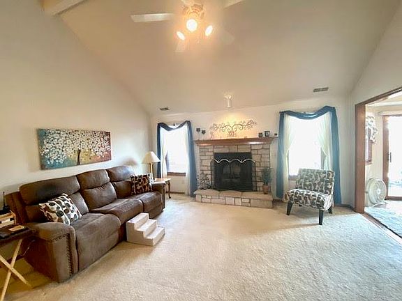 OPEN HOUSE SATURDAY 6/10 1-3 PM Located in the highly desirable NWAC School district, this 1406 sq ft ranch style home offers 3 bedrooms (each with a walk-in closet), 2 full baths, Spanish lace ceilings, 6 panel doors, cathedral ceilings and wood burning fireplace with gas starter in the great-room, generous kitchen with lots of cabinets & counter space, and a dining area with sliding doors leading to the covered back patio overlooking the fenced in back-yard. The primary bedroom offers a cathedral ceiling and a private en-suite. Association pool and all 3 Schools within walking distance! Average monthly utilities: REMC Electric: $85.00 Nipsco Gas: $80.00 Budget Huntertown Utilities (water/sewer/trash): $82.00
