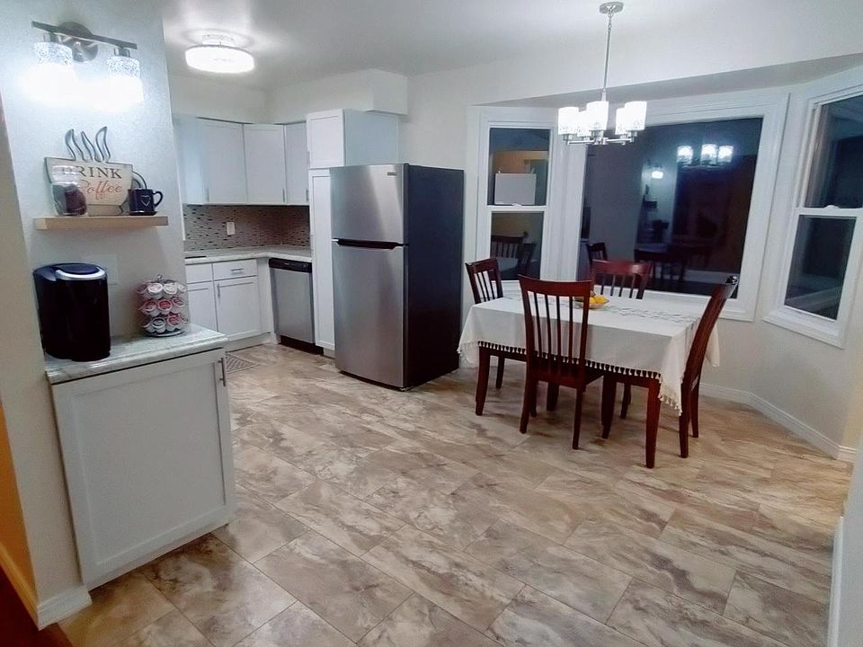 Beautifully renovated 3 bed, 1.5 bath home on a large corner lot in a well-established and quiet neighborhood. New flooring, paint, wallpaper, kitchen cabinets, over range glass and stainless-steel hood, light fixtures, doors, tiled shower, bathroom vanities and toilets. All new/newer vinyl windows. All new stainless steel 5 burner gas range, refrigerator and dishwasher.Lower level includes washer, dryer, stand up freezer and new furnace. Bonus room with closet, storage area, finished rec room that includes new cabinets, electric fireplace and wall mounted 65 inch Vizio smart TV.Large garage measures 26 x 26 feet. Square footage must be verified by buyer.