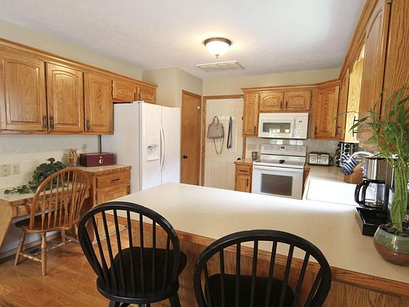 Backs to wooded area/no neighbors behind!So Clean with updates thru-out;new light fixtures,new hardwood floors in kit/din,new tiled shower in master bath.2017 Refrigerator & Dishwasher remain. .Microwave/water heater newer. 3 BR's,2 Baths,2 car garage.Master bath is spacious with jetted tub and tiled shower,dual sinks and walk in closet.There is a pantry in the kitchen, gas log fireplace in living room and fenced backyard with raised beds for gardens. Yard is beautifully landscaped ; front and back.
