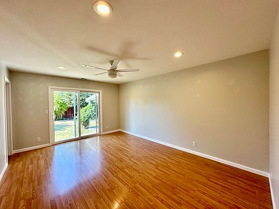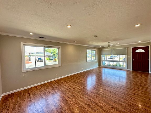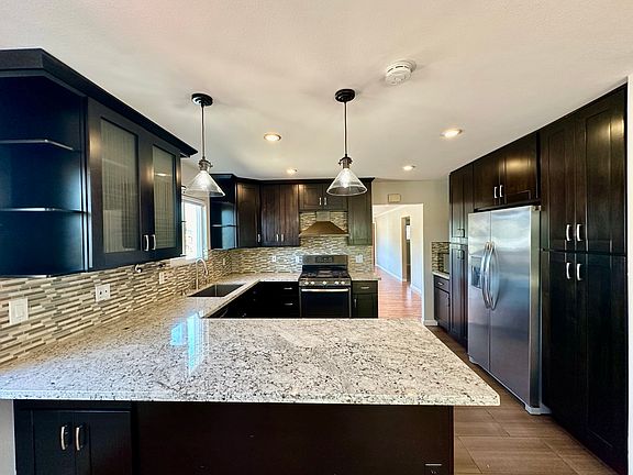 Available Now! This charming 4-bedroom, 3-bathroom home features two spacious master suites, each with its own en-suite bathroom, ideal for multi-generational living or guests. The open-concept layout connects the modern kitchen complete with stainless steel appliances and ample counter space to the bright dining and living areas. Large windows bathe the home in natural light, enhancing the welcoming atmosphere. Both master suites include walk-in closets, double vanities, and walk-in showers, with one offering a luxurious soaking tub. The two additional bedrooms share a full bath, perfect for family or office space. Outside, the backyard is a serene retreat, featuring a patio for entertaining and fruit trees that provide fresh seasonal produce. A two-car garage and ample storage complete this inviting home, situated in a peaceful neighborhood near schools, parks, and shopping. 12 Month Lease Utilities Are Separate