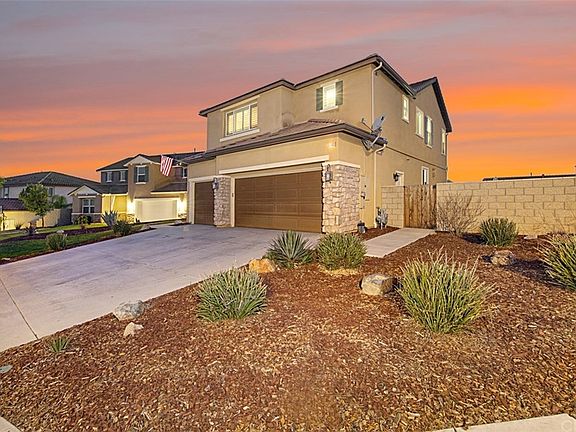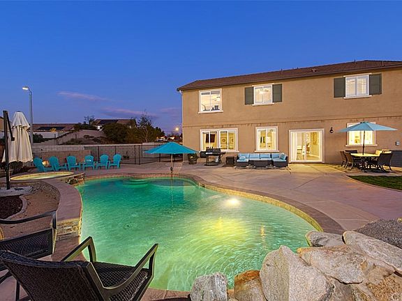 Situated on a premier, oversized 11,326 SQFT lot with breathtaking mountain views, this executive pool/spa home shows just like a model! Featuring 5 bedrooms and 3 bathrooms, this meticulously cared for property boasts 3,169 SQFT of functional living space and over $100K of designer upgrades. Main level with dramatic entry, formal dining room, bedroom and full bathroom, perfect for out of town guests! A chef inspired kitchen features stainless steel appliances, custom back splash, double ovens, granite countertops, walk-in pantry and center island that opens to spacious great room with cozy fireplace. Second level has large home theater/bonus space including a $10,000 Runco projection system, convenient upstairs laundry room and sizable bedrooms with plenty of storage space and natural light throughout. Retreat to the master suite complete with huge walk-in closet, dual sinks, soaking tub and shower. Family and friends will enjoy the sparkling pool/spa, waterfall, fire-pit, large grass area, and concreted side yard in the beautifully landscaped entertainers backyard. This tastefully upgraded home also features a 3 car garage, new paint throughout, new wood laminate flooring, plantation shutters/window coverings, custom wrought iron staircase, crown moulding, upgraded lighting & electrical and more! Located in highly desirable South Wildomar, near the 15 freeway, close to schools, parks and shopping malls, just minutes away from Temecula Wine Country & Pechanga Casino!