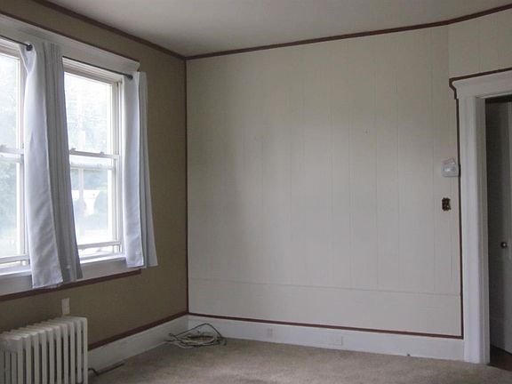 Convenient first floor apartment Three season front porch, Parking in driveway, Owner takes care of lawn maintenance & snow removal on sidewalk. Newer carpet, Washer & dryer in basement. Tenant pays gas, electric , garbage. Refrigerator as/is left by previous Tenant . No pets NTN report required Must use Landlord lease Available immediately