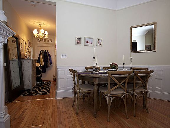 Perfect one bedroom home features hardwood floors and ornate mantel. Enjoy high ceilings, crown and chair rail moldings, wainscoting and recessed lighting. Modern kitchen and tile bath. The building has a large common roof deck with great Views. Professionally managed elevator building with elegant common areas.